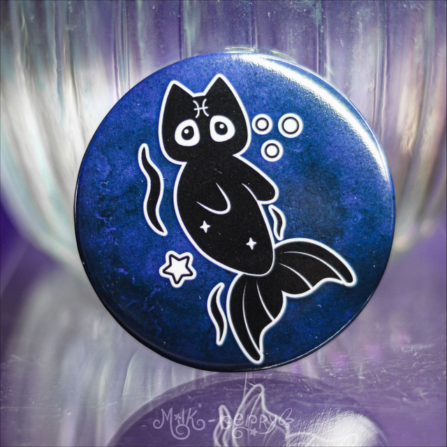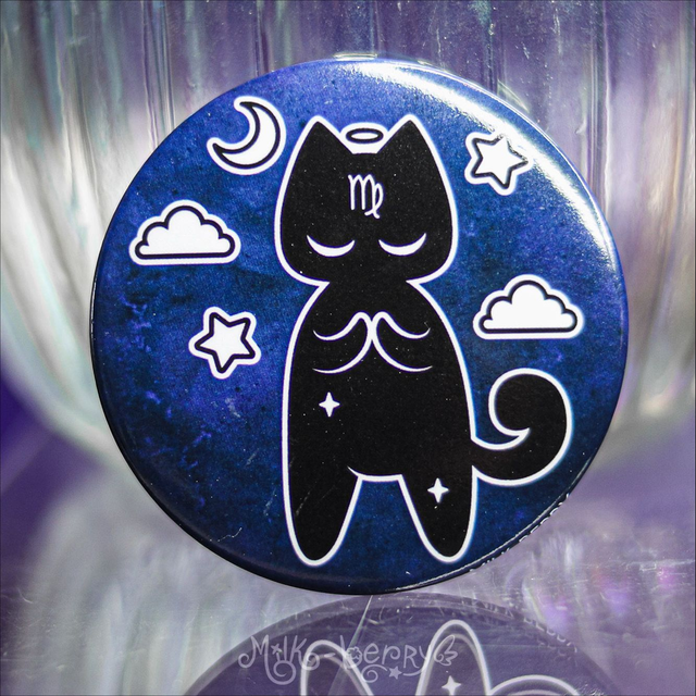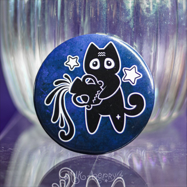 Badge 56mm Chastrologie l Signes Astrologiques Chat
