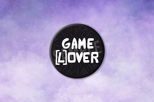Badge "Game Lover", jeu de mot entre Game Over et Lover, pour les Gamers.