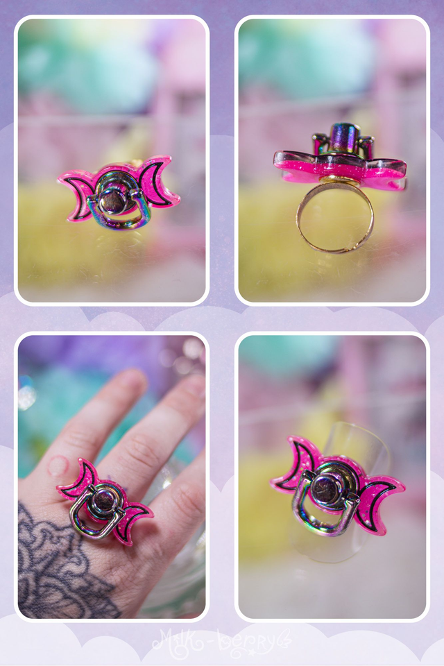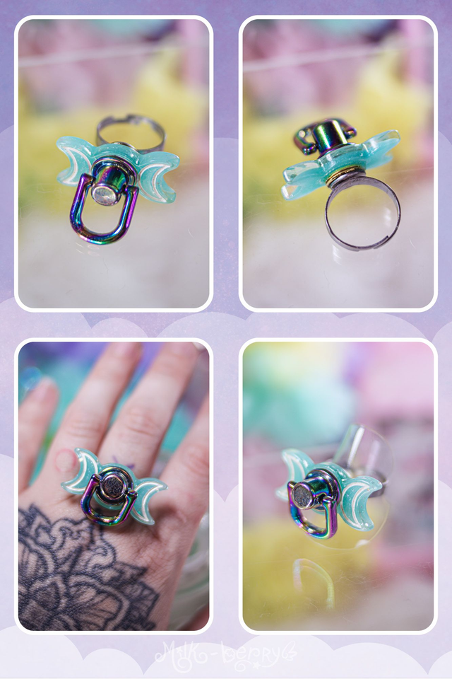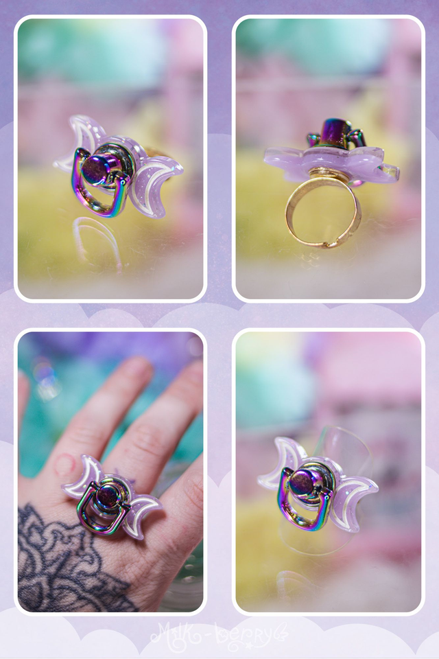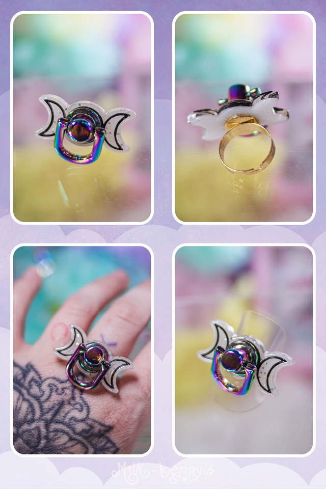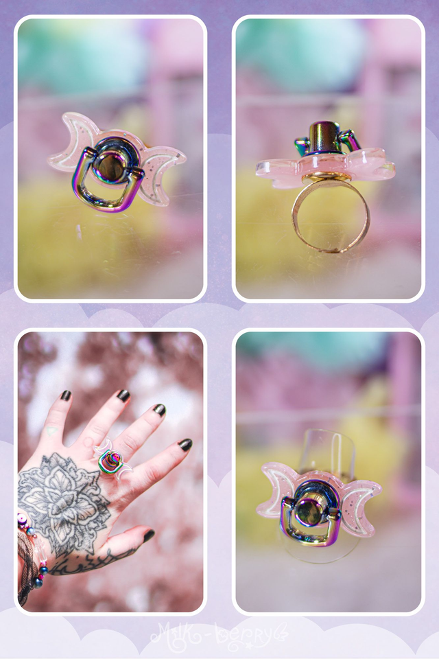 🌙 Ajoutez une note Pastel Goth à vos looks avec ces bagues en forme de triple lune agrémentée d'un anneau. Les bagues peuvent aussi servir d'accessoire de stimming, les personnes anxieuses ou neurodivergentes apprécieront jouer avec l'anneau pour s'apaiser.