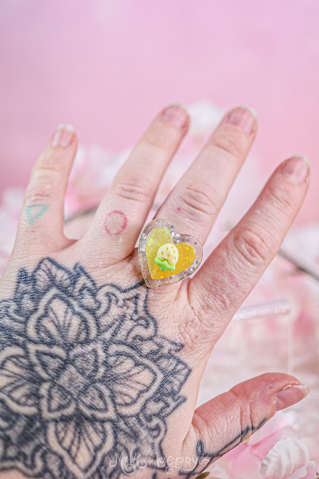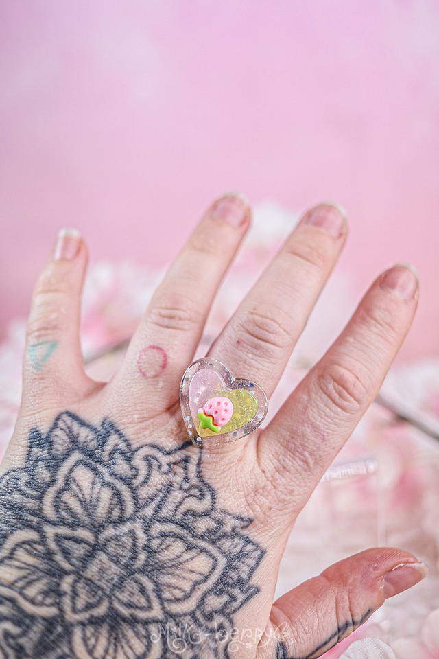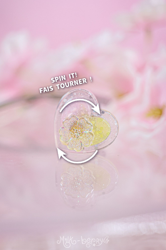 💖 Envie d'une bague kawaii et fonctionnelle ? Ces bagues en forme de cœur présentent une mini-fleur ou fraise rotative qui vous permettra l'auto-stimulation en la faisant tourner. Un accessoire mignon et ludique qui plaira aux personnes neurodivergentes ou anxieuses, en plus d'ajouter une touche fleurie à vos looks Sweet Lolita, Decora, Fairy Kei, Pastelcore et autres tenues d'inspiration Harajuku !