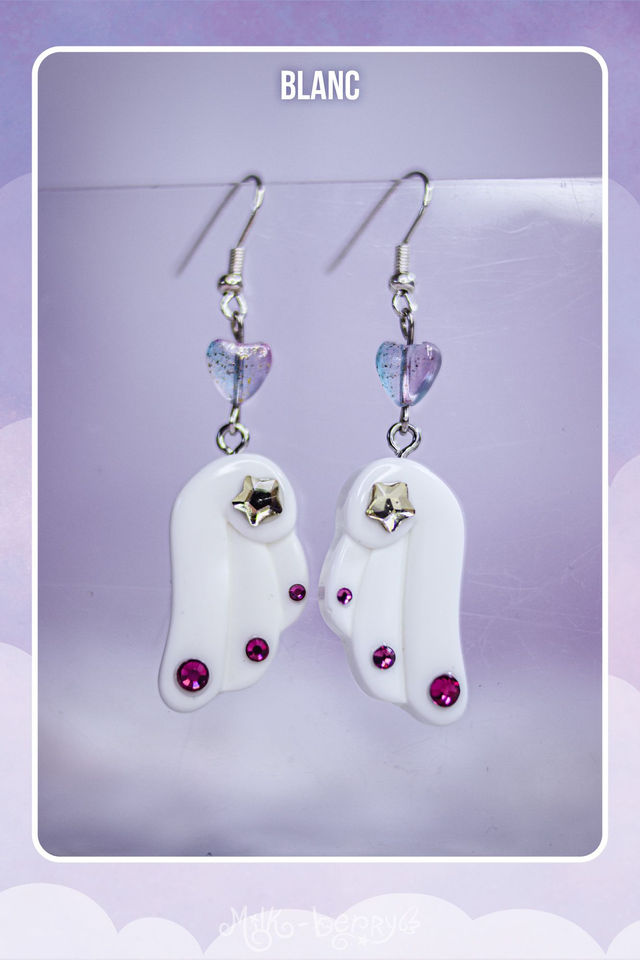 ✨ Les Boucles d'oreilles Angel Wings présentent des ailes façon manga, décorées de strass et d'une étoile. Pour vos looks Sweet Lolita, Kawaii, Yumekawaii, Pastel Goth, Fairy Kei, Decora, Harajuku et autres.