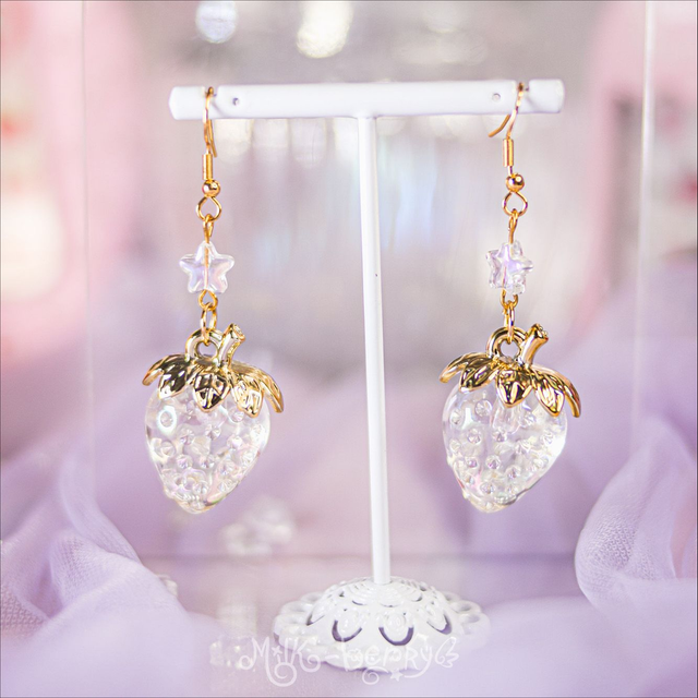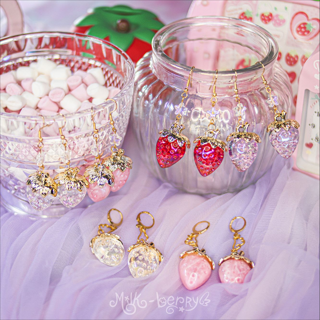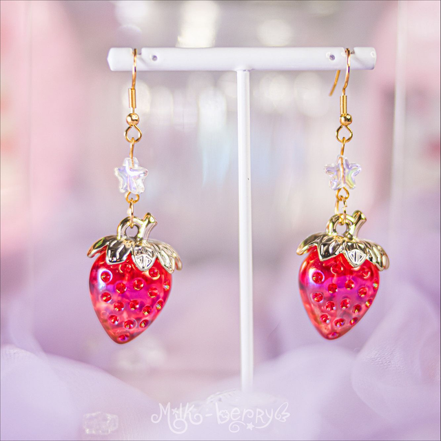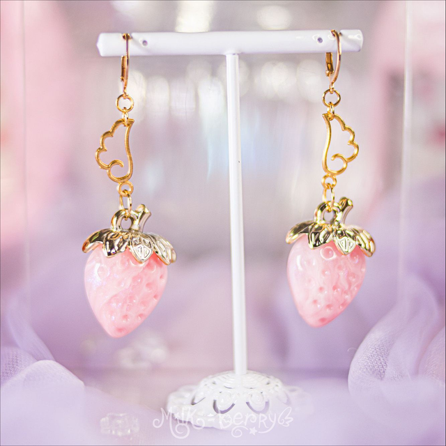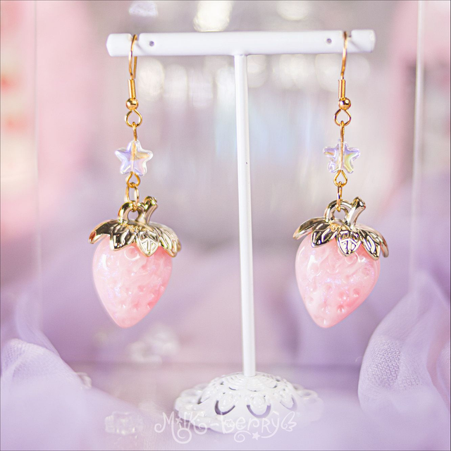🍓 Vous adorez les fraises ? Moi aussi ! C'est pour ça que j'ai conçu les Boucles d'oreilles Fraise Céleste. Elles présentent une élégante fraise en résine disponible en plusieurs coloris, surplombée d'une perle étoile ou d'une aile, au choix. Parfait pour une coordi Sweet Lolita avec un print fraise, mais aussi pour toutes vos tenues Kawaii, Harajuku, Lolita, Decora, Fairy Kei... Ou juste pour ajouter une touche gourmande à vos looks casuals 😙