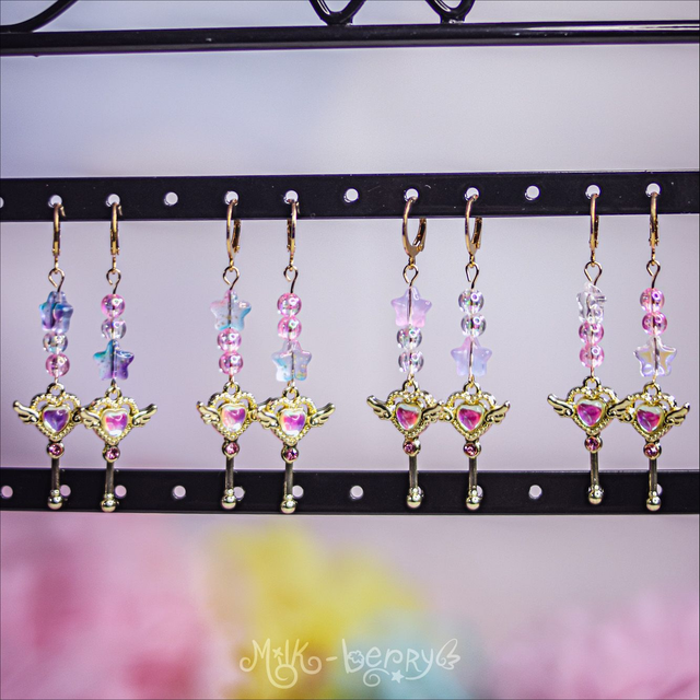 🌟 Si vous avez l'âme d'une Magical Girl, les Boucles d'oreilles Magical Heart devraient vous plaire ! Surplombées d'une perle étoile et de perles transparentes, ces élégantes boucles d'oreilles apporteront une touche d'éclat et de magie à vos tenues Lolita, Harajuku, Yumekawaii ou complèteront vos tenues plus casual.