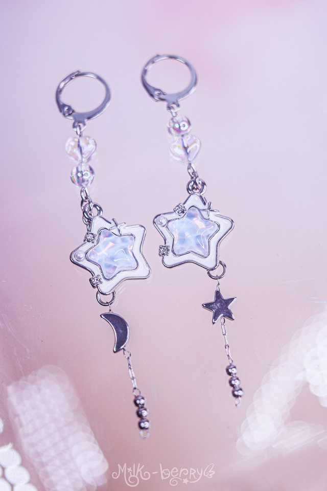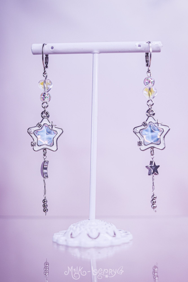 🌟 Les Boucles d'oreilles Magical Star apporteront une touche "Magical Girl" à vos looks ! Ces étoiles scintillantes accompagnées de perles fantaisie et d'une chaînette à perle étoile et lune complèteront vos tenues Lolita, Harajuku, Yumekawaii ou ajouteront une touche d'éclat festif à vos looks plus casual.