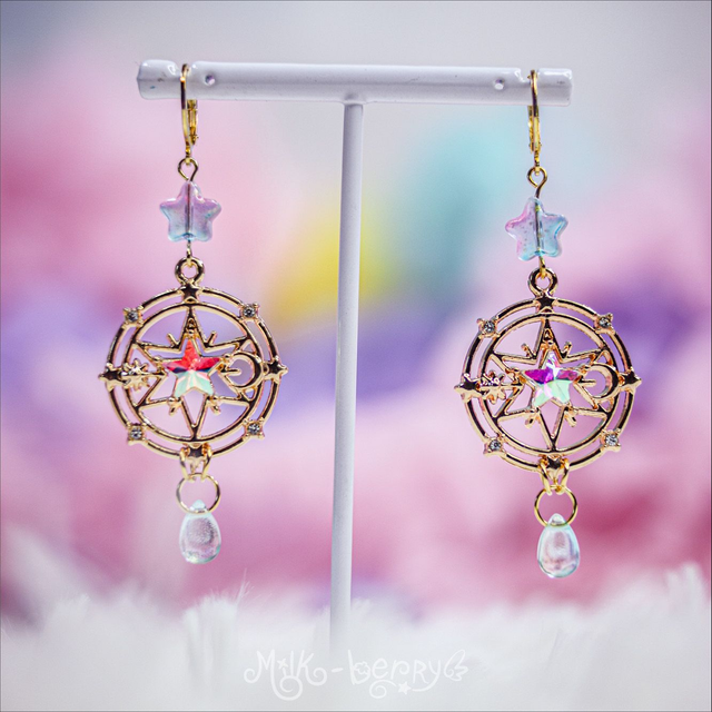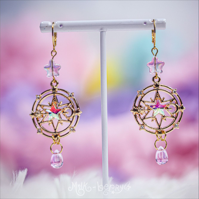🌟 Que vous ayez l'âme d'une Magical Girl ou celle d'une sorcière avec un penchant pour les couleurs pastel, les Boucles d'oreilles Starry Magic Circle devraient vous plaire ! Achevées par une perle en forme de goutte, surplombées d'une perle étoile, ces élégantes boucles d'oreilles apporteront une touche d'éclat et de magie à vos tenues Wiccan, Lolita, Harajuku, ou complèteront vos tenues festives.