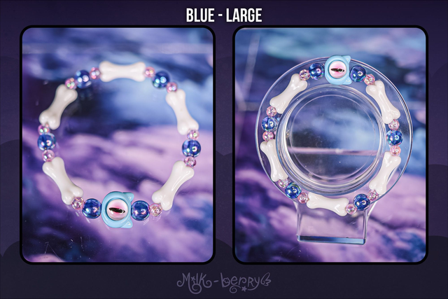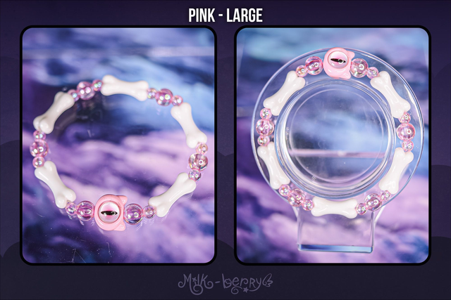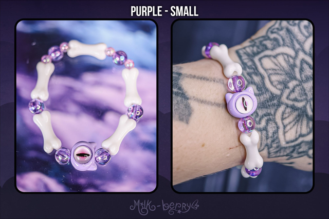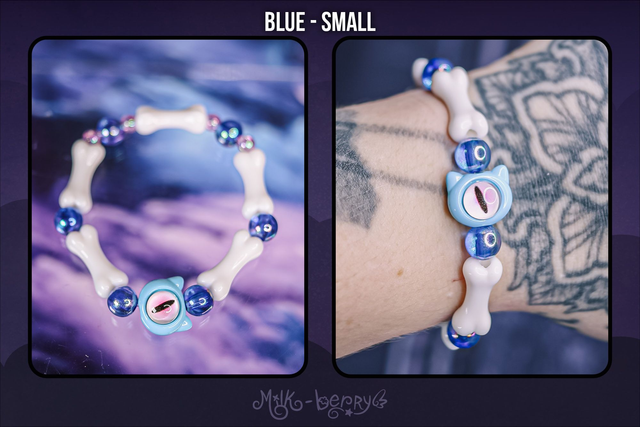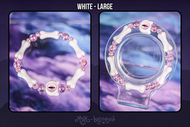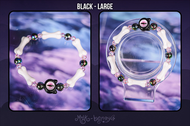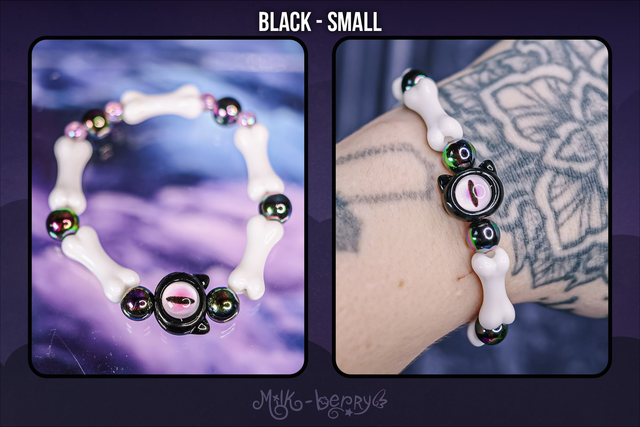 ✨ À la fois mignons et effrayants, ces bracelets d'inspiration Pastel Goth se composent d'une grosse perle chat à l'œil maléfique accompagnée d'ossements. Ils complèteront avec brio vos looks Goth, Lolita, Yamikawaii ou ajouteront une note creepy à vos tenues plus classiques !