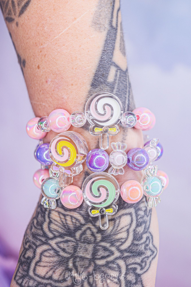 🍭 Boostez vos looks avec ces bracelets kawaii présentant une grosse perle sucette pastel accompagnée de perles fantaisie et bonbons ! Pour vos tenues Sweet Lolita / Kawaii / Decora / Fairy Kei / et autres looks "Harajuku Inspired", ou pour ajouter une touche gourmande à vos tenues casual.