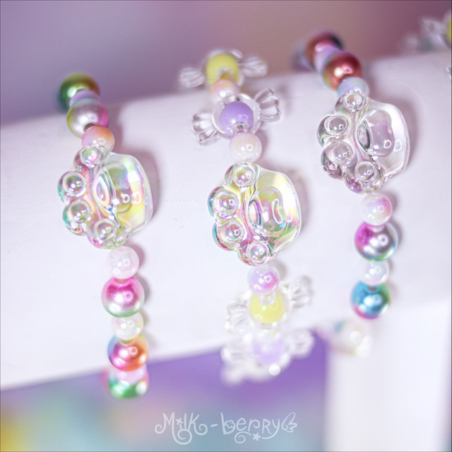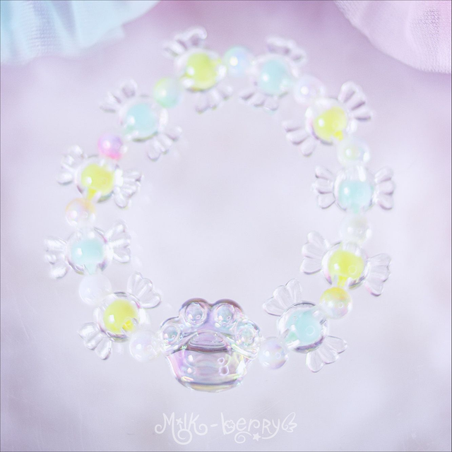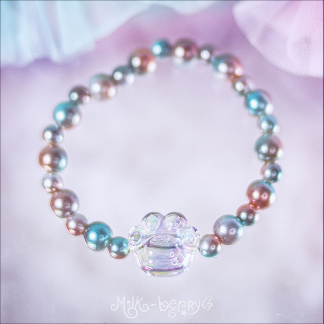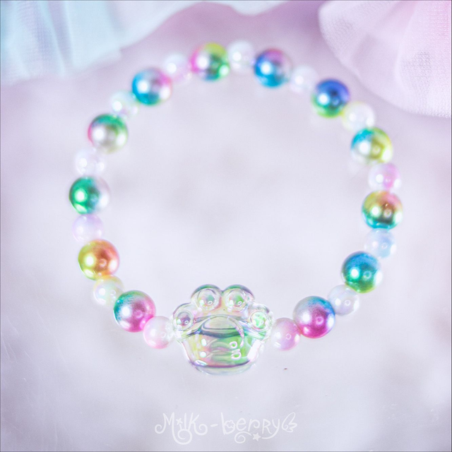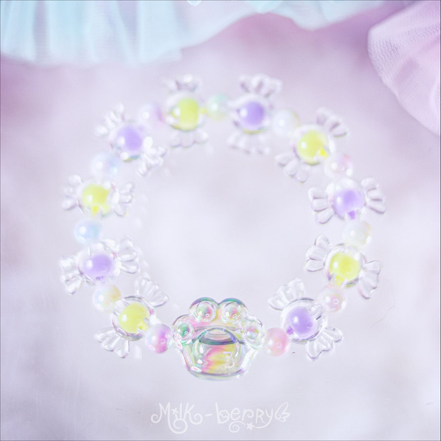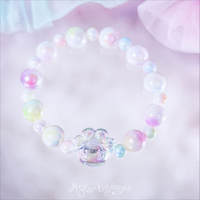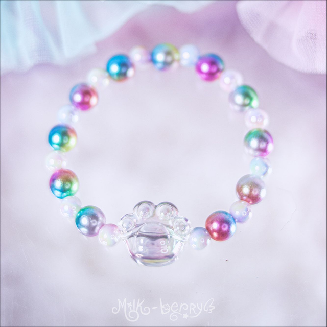 ✨ Fan de chat ? Envie d'un accessoire kawaii discret ? Les bracelets "Sweet Paw" présentent une perle en forme de patte de chat transparente, accompagnée de perles bonbon aux teintes pastel. Parfait pour ajouter une douce note colorée à vos looks casual ou compléter vos tenues Sweet Lolita, Pastelcore, Decora, Fairy Kei et autres outfits inspirées par la mode d'Harajuku.