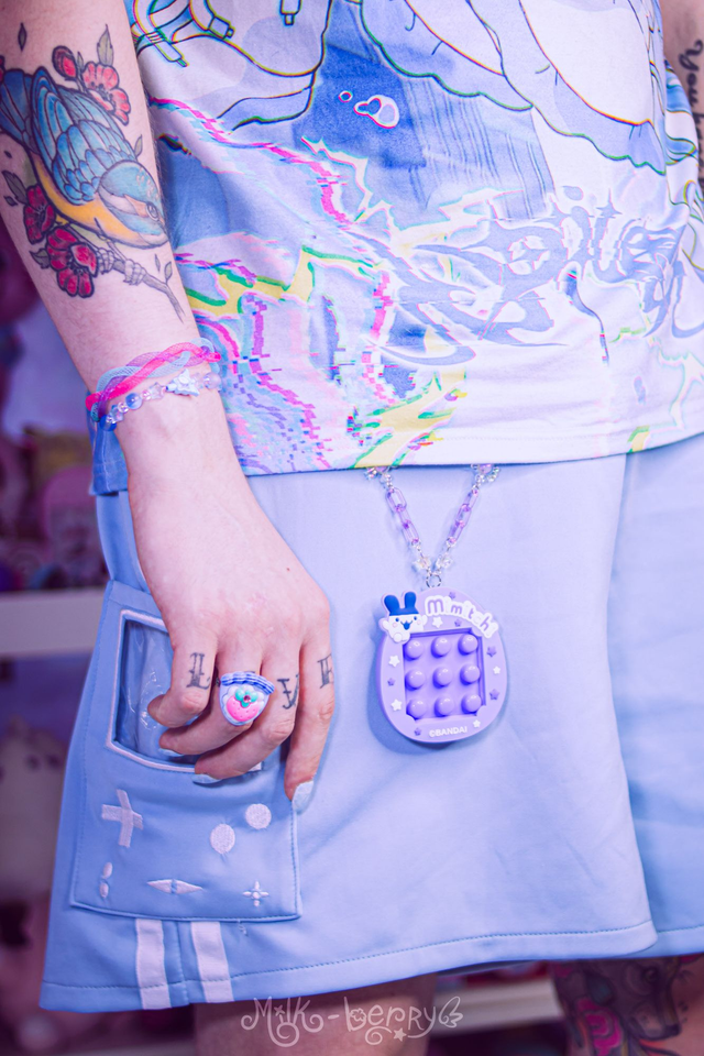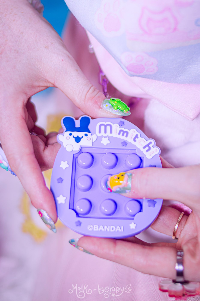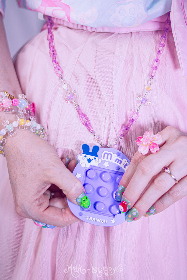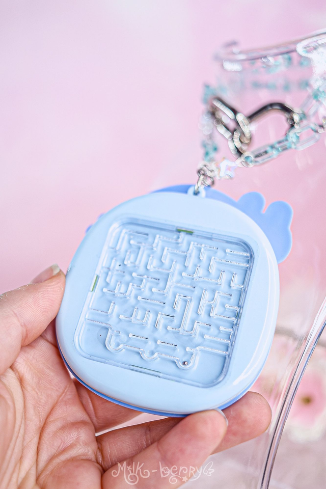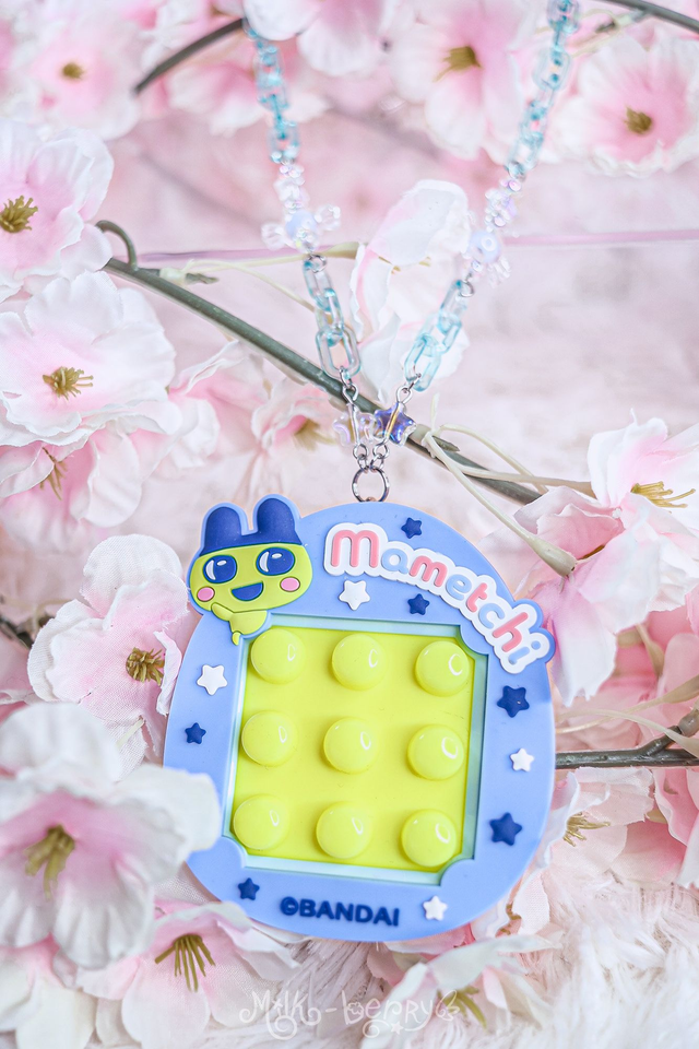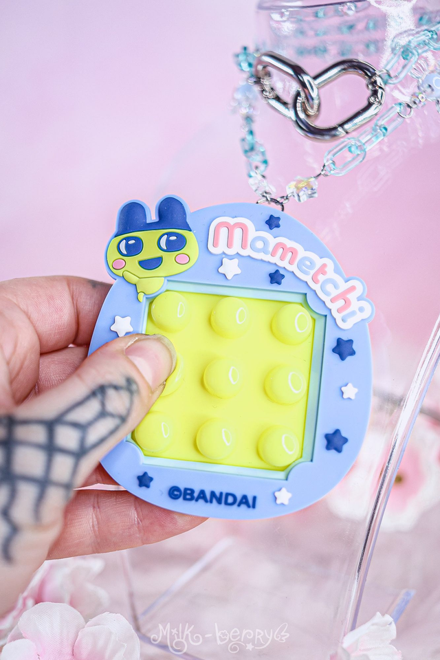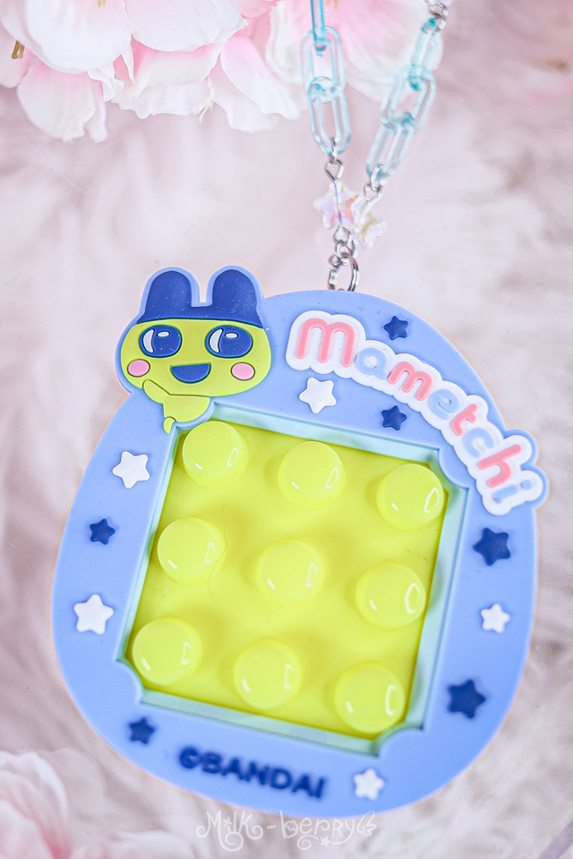 🎀 Fan de Tamagotchi ? J'ai détourné ce Fidget Toy officiel licencié Bandai, acheté au Japon, pour le monter sur chaîne. L'avant présente des boutons à pousser, l'arrière un mini labyrinthe. Achevé par d'épais mousquetons, cet accessoire pourra se porter en collier, s'attacher à vos pantalons ou décorer vos sacs.