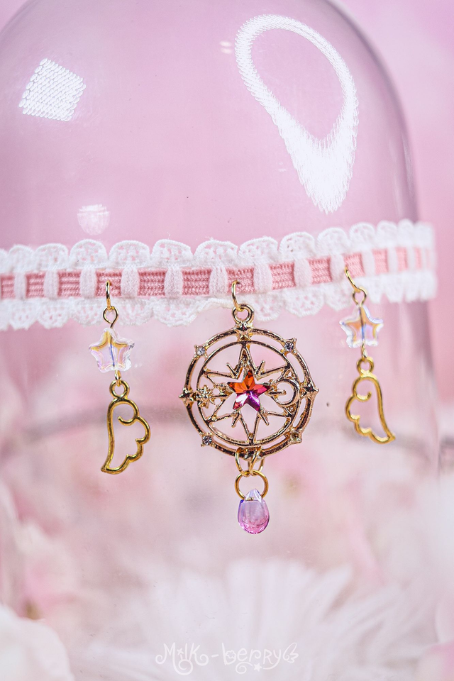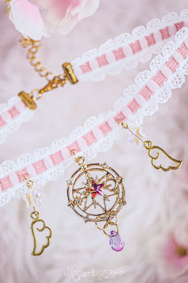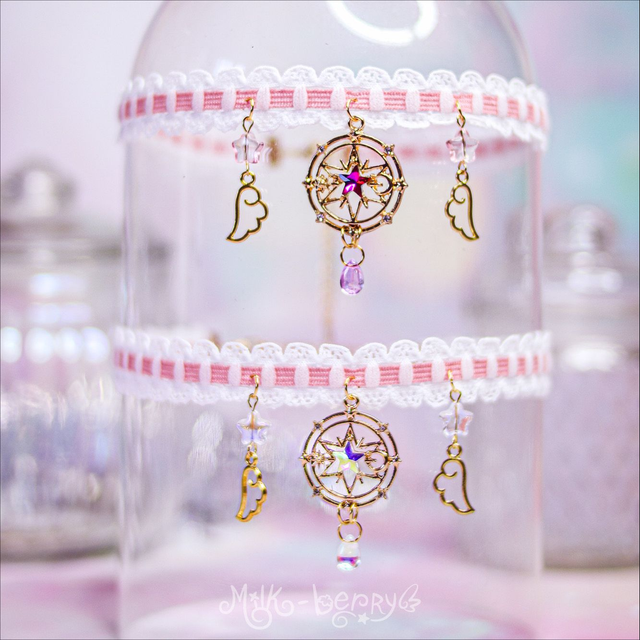 🌟 Cet élégant collier ras-de-cou en dentelle blanche et rose présente un pendentif de cercle magique, achevé par une perle en forme de goutte et accompagné de petites ailes. Il ajoutera une touche de magie à vos tenues Kawaii, Sweet Lolita, Pastel Goth, Decora, Fairy Kei et autres looks Harajuku.
