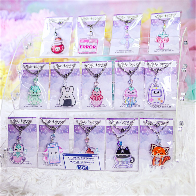 ☕️ Ce collier en Acrylique présente une tasse de thé avec un chat kawaii. L'illustration a été réalisée par mes soins.