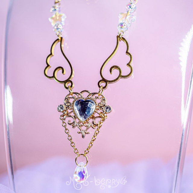 💖 Ces élégants colliers présentent un pendentif de cœur ornemental accompagné d'ailes et d'une jolie perle en forme de goutte. Il agrémentera vos tenues d'inspiration Lolita ou ajoutera une touche d'éclat et de magie à vos looks plus classiques !