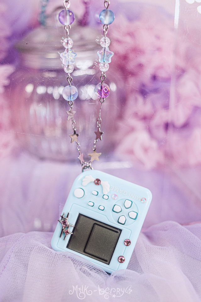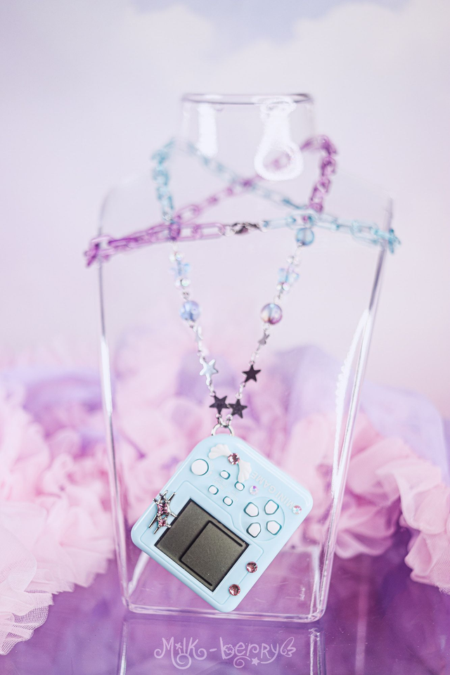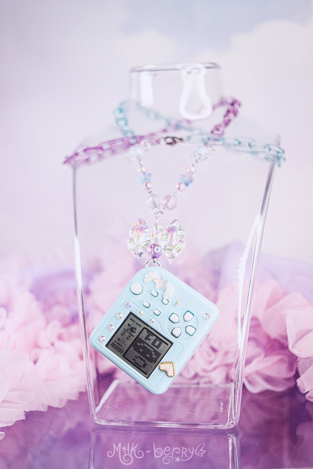 🎮 Si vous aimez le retrogaming et le Kawaii, ces colliers présentant un Mini Jeu pastel en forme de Game Boy décoré de strass devraient vous plaire !