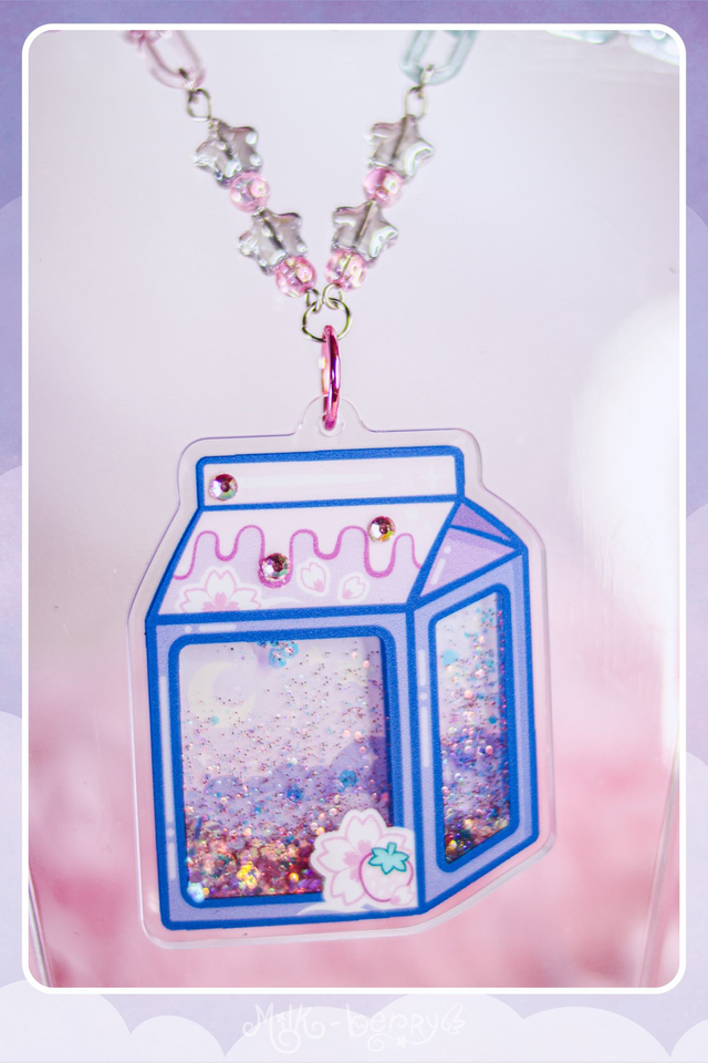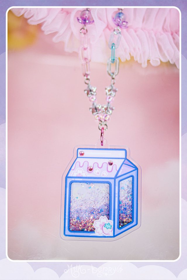 Collier Shaker à paillettes Brique de lait fraise sakura