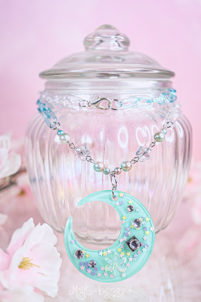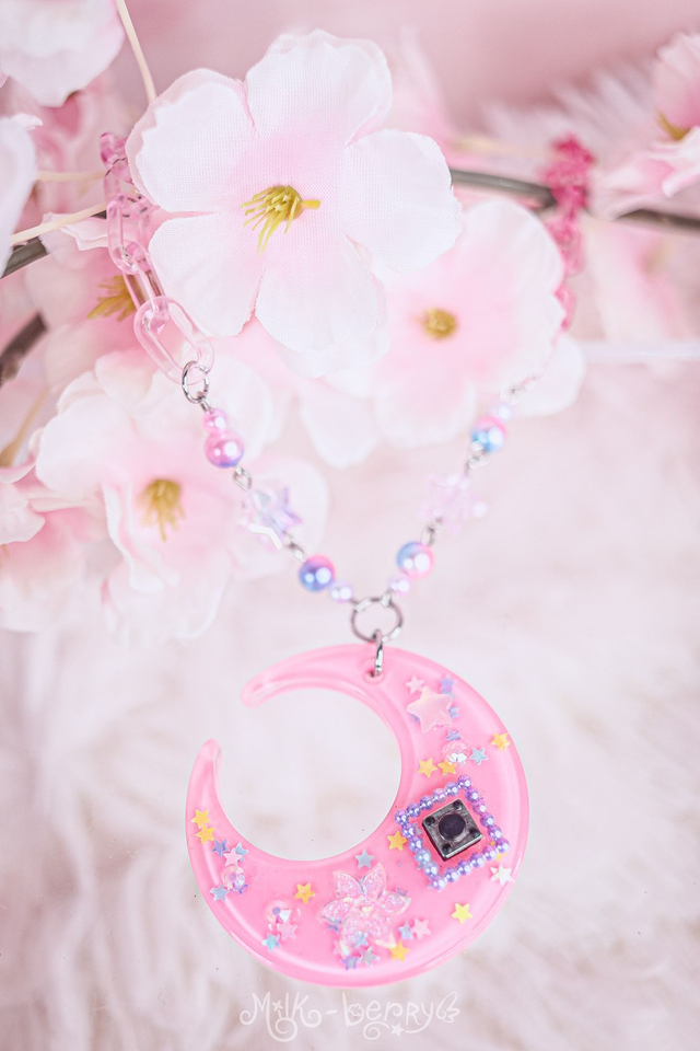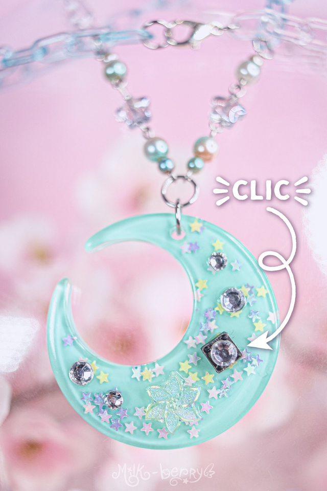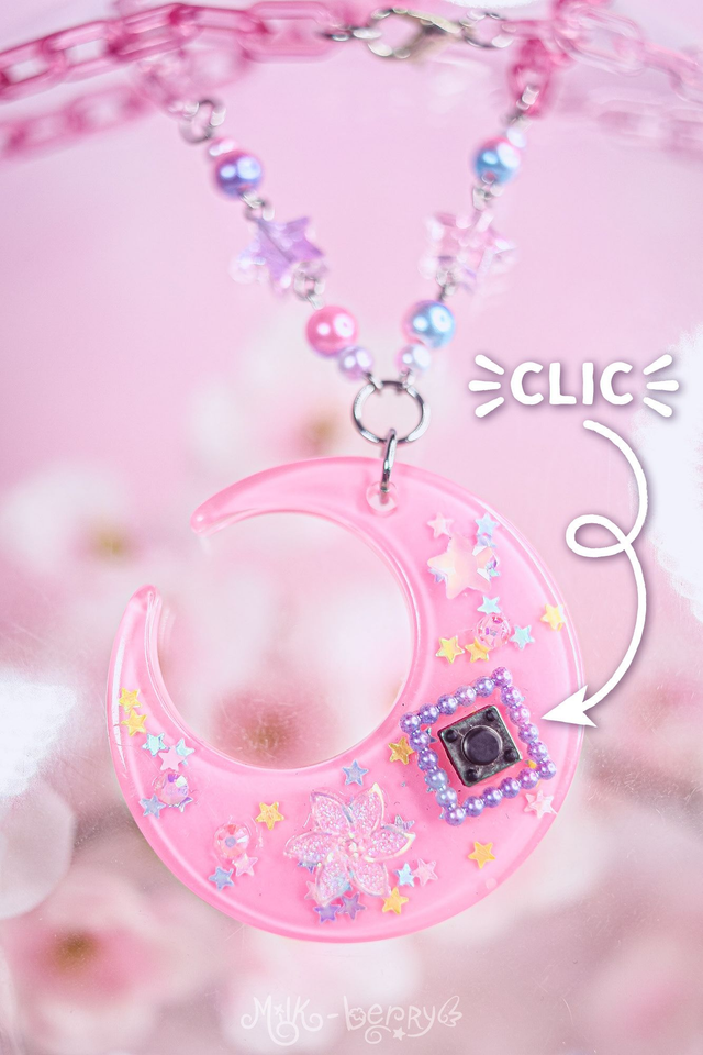 🌙 Besoin d'auto-stimulation ? Oubliez les accessoires inesthétiques et optez pour ces colliers lune pastel agrémentés d'un bouton à cliquer qui produit un "clic" très discret. Adaptés aux personnes neurodivergentes ou anxieuses, ces colliers compléteront vos looks Lolita, Harajuku, Pastel Goth ou ajouteront une touche de fantaisie onirique à votre tenue tout en vous permettant de stimmer !