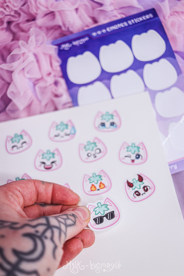 Planche d'autocollants Emoticons Chat Fraise Milk-Berry