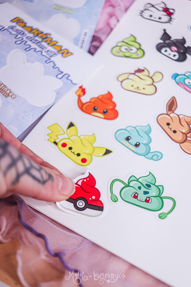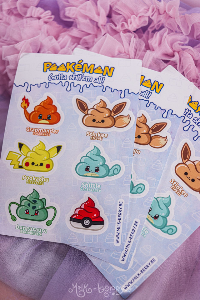 Vous aimez la Pop Culture et "l'humour de merde" ? Craquez pour cette planche d'autocollants "Pookemon" comportant 6 autocollants parodiques de Pokémon et d'une pokeball en version caca kawaii !