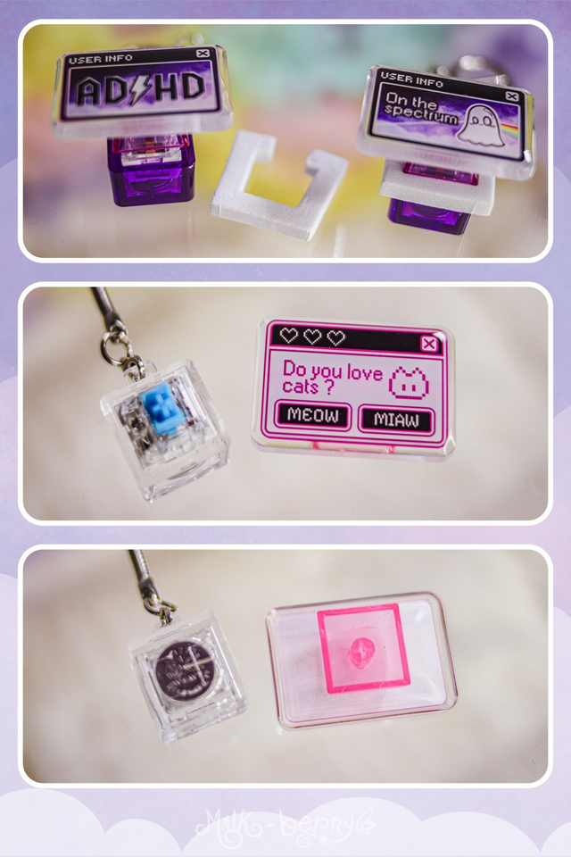 🌙 Besoin d'auto-stimulation ? Ce porte-clé clicker en touche de clavier sera l'accessoire idéal ! Lorsque vous appuyez dessus, il produit un petit "click" et fait de la lumière. Réalisé en acrylique avec une couche de résine epoxy, il présente un design "Sleep not found". Ce porte-clé est particulièrement adaptée aux personnes neurodivergentes.