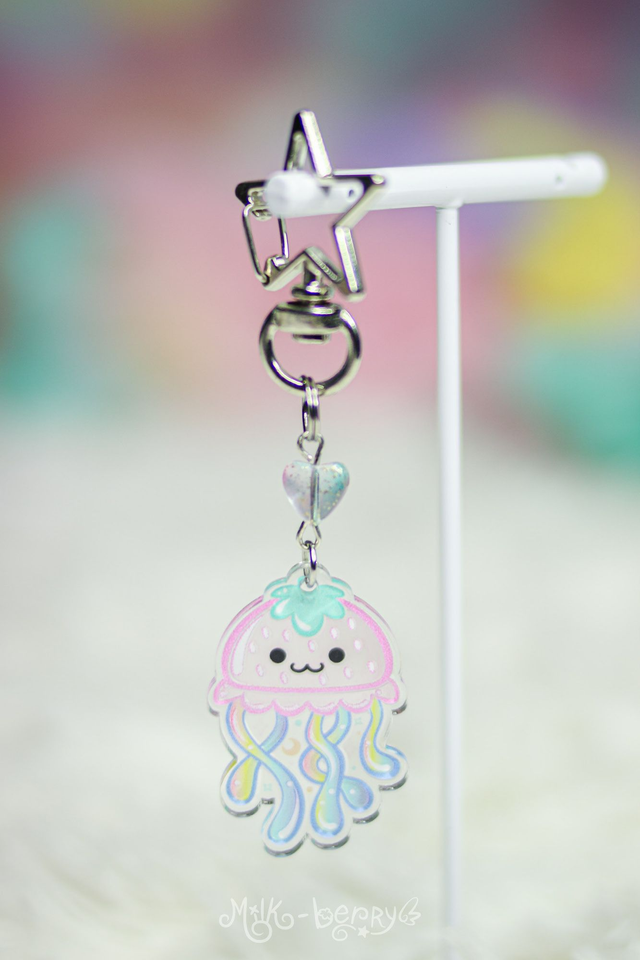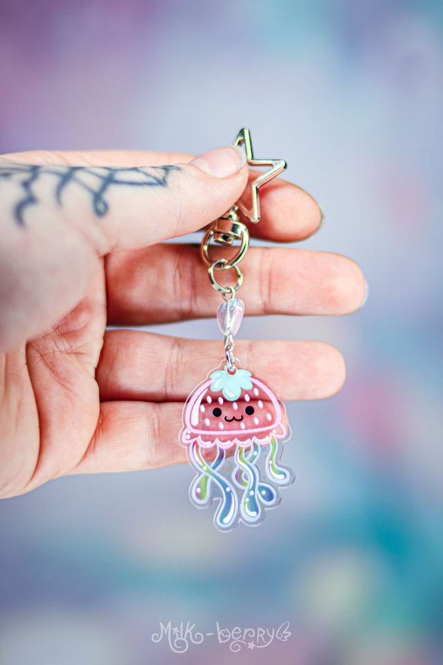🍓 Ce porte-clé en Acrylique présente une méduse fraise kawaii. L'illustration a été réalisée par mes soins. C'est l'objet parfait pour accompagner vos clés, décorer vos sacs ou faire un cadeau original à vos proches.