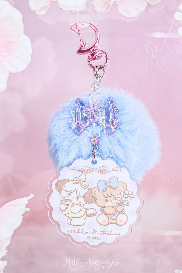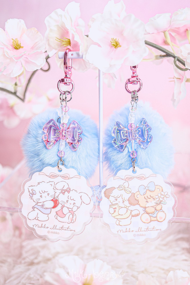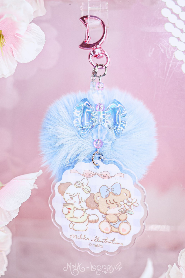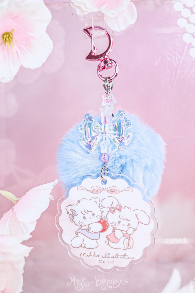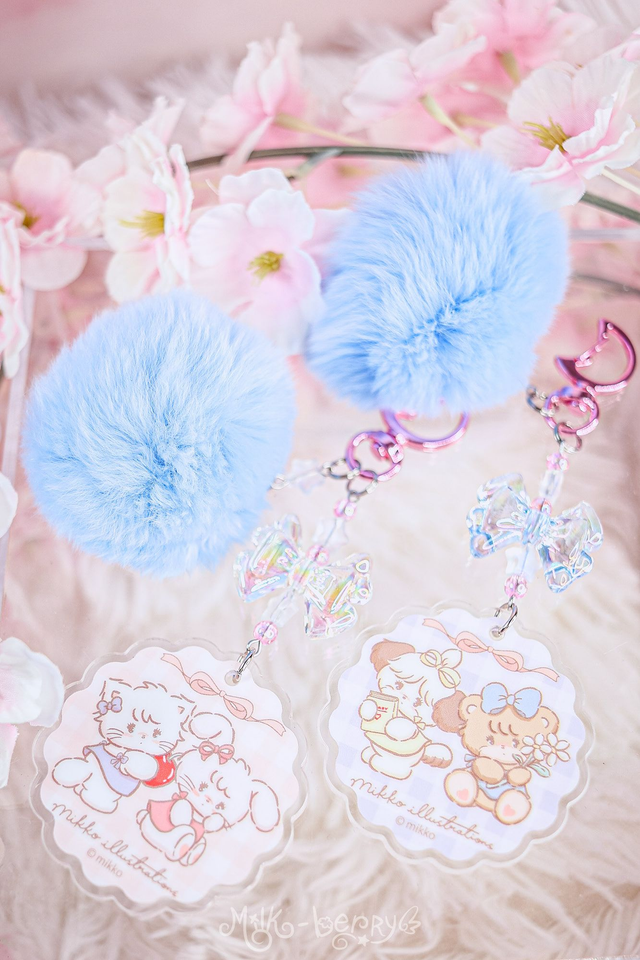 💖 Ces porte-clés ont été créés à partir de goodies Mikko Illustration officiels achetées au Japon. Ils s'accompagnent de perles fantaisie et d'un pompon bleu super doux.