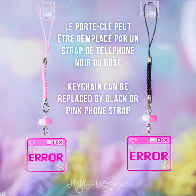 Vous préférez un strap de téléphone ? Aucun problème, le porte-clé peut être remplacé par un strap noir ou rose sur simple demande !