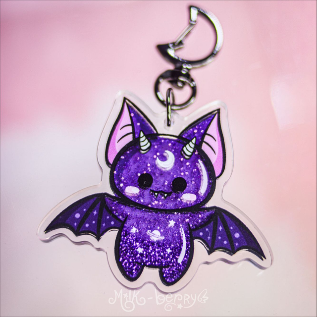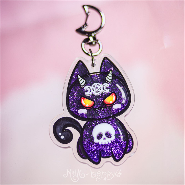 🦇 Craquez pour un porte-clé shaker amusant au style kawaii sombre ! Ces porte-clés stimulants en acrylique présentent un design de chat démoniaque ou d'adorable chauve-souris galactique. Ils contiennent des paillettes mauves dans du liquide pour une stimulation visuelle des plus plaisantes.