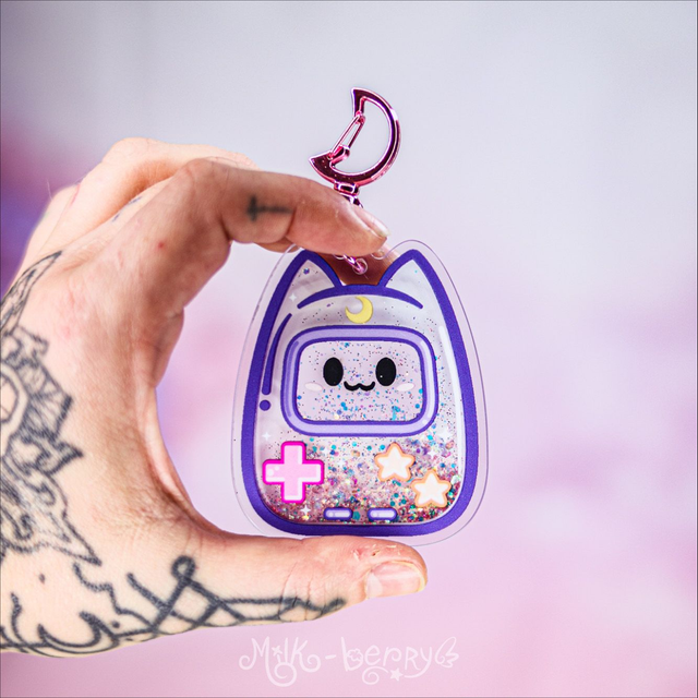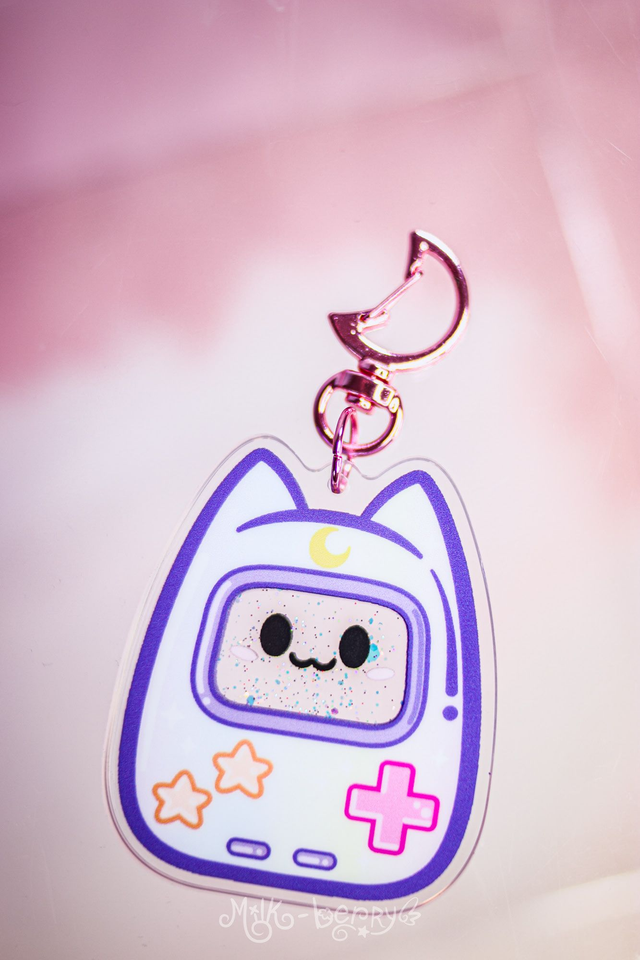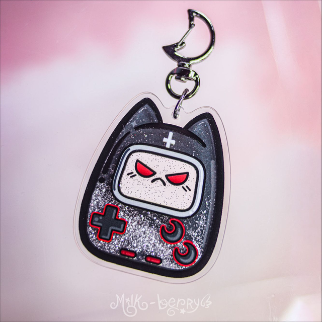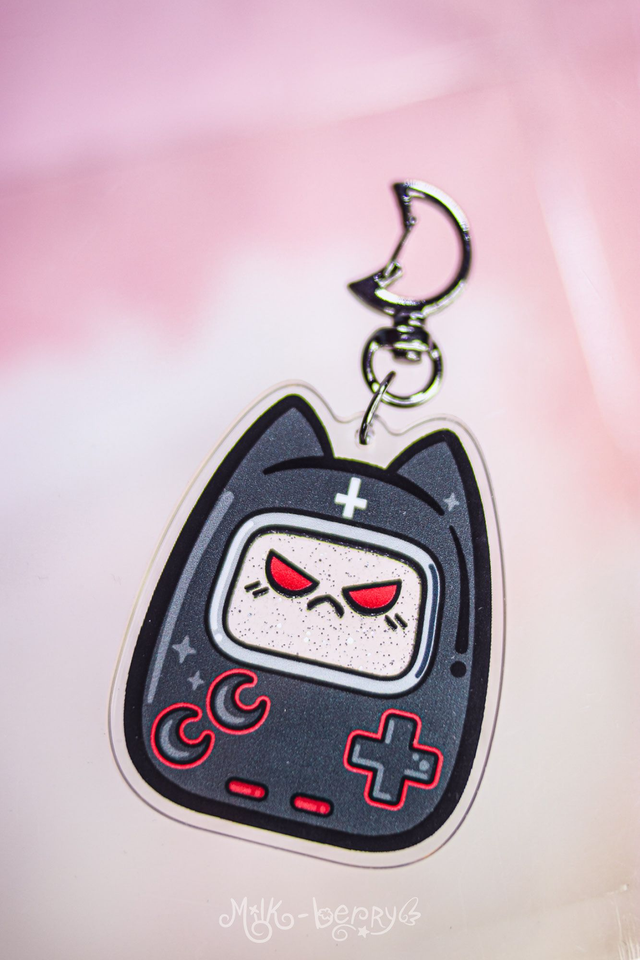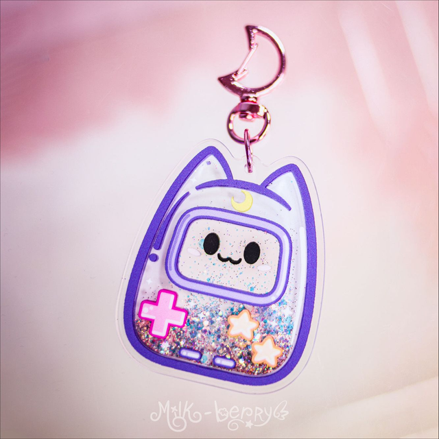 Porte-clé Shaker à paillettes Chat Game Boy Kawaii & Dark