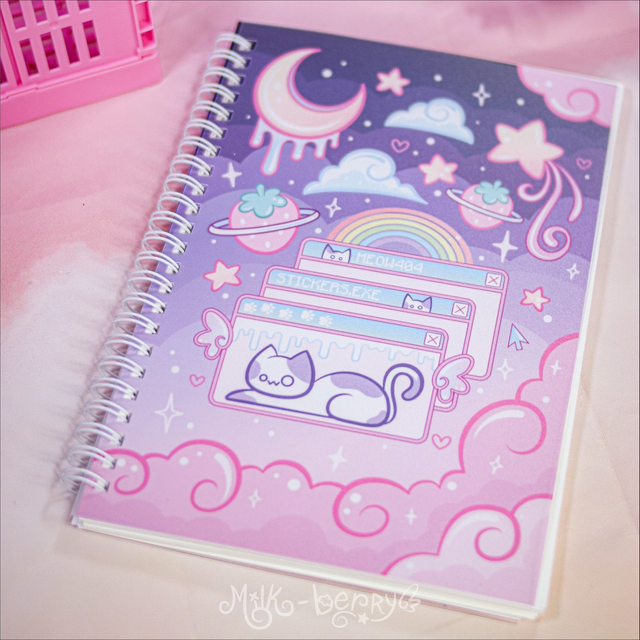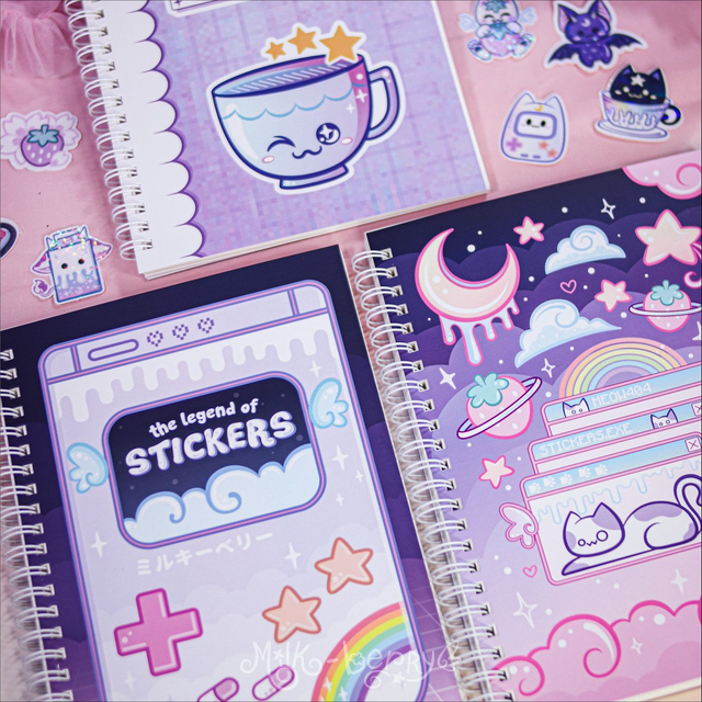 Illustration originale réalisée par mes soins. Dessin aux vibes kawaii Y2K avec ciel étoilé. Le prix est pour un sticker book, les autocollants ne sont pas inclus.