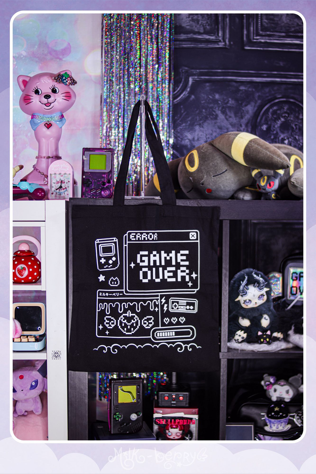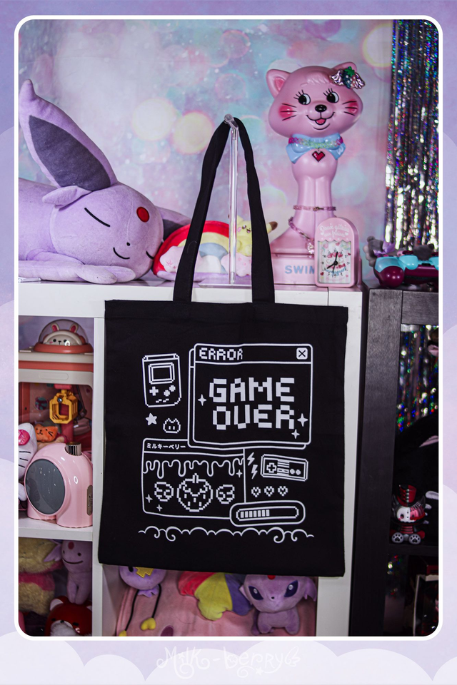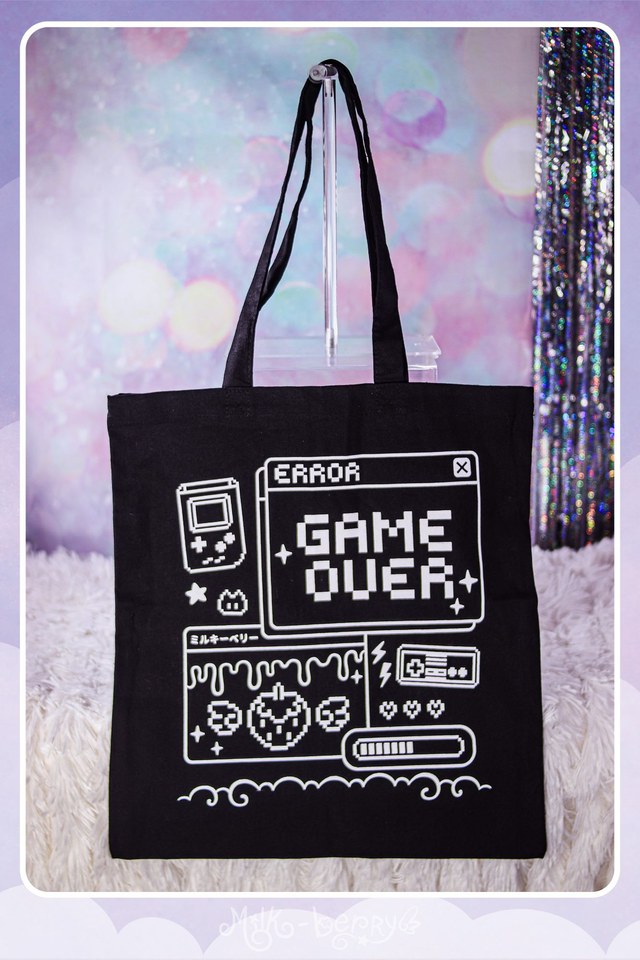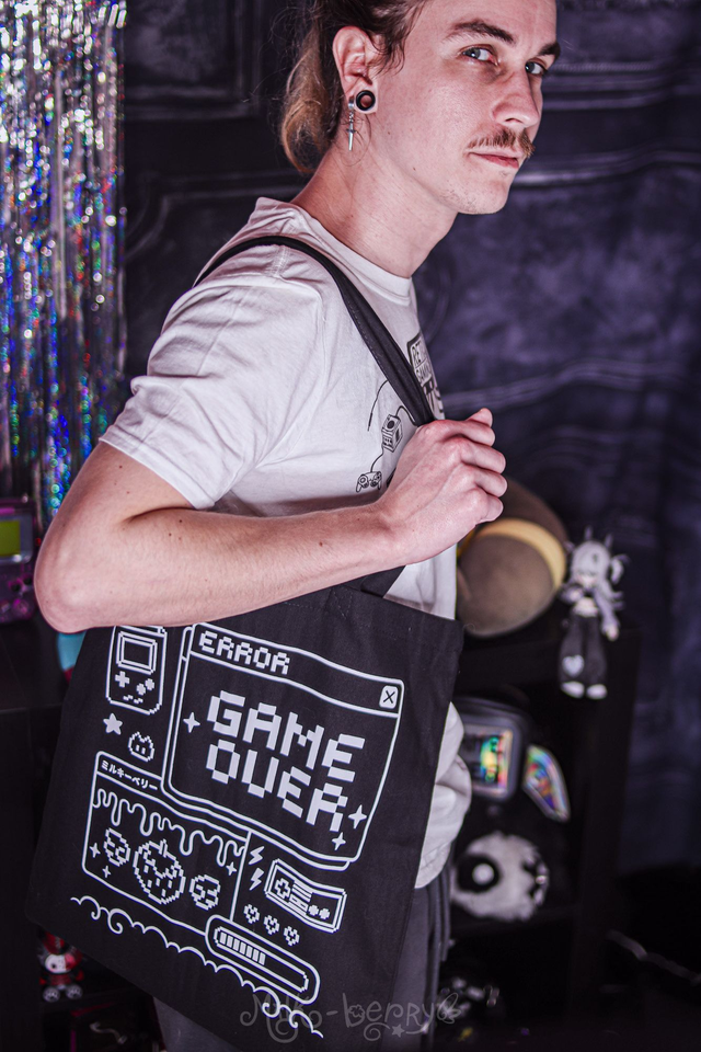 ⭐ Le Tote Bag, ou sac fourre-tout, est l'accessoire indispensable à avoir : courses, shopping, sorties, rendez-vous, on peut y glisser facilement de nombreuses affaires et c'est pour ça qu'on l'embarque partout. Les geeks et passionné•es de jeux vidéo apprécieront ce design aux allures retro avec ses détails en pixel art, imprimé en blanc sur tissu noir.