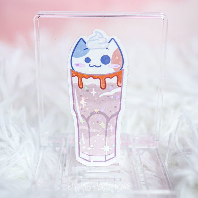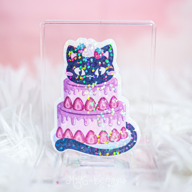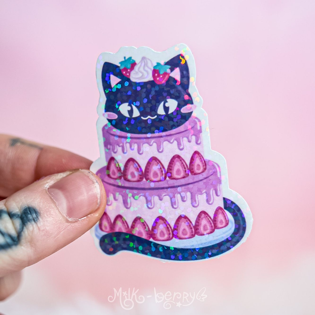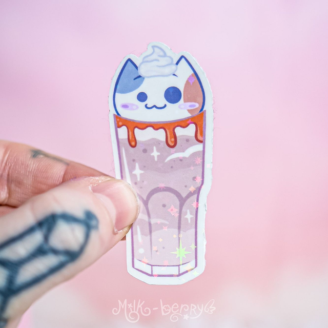 Autocollants Kawaii Chat Gourmand l Strawberry Cake | Milkshake