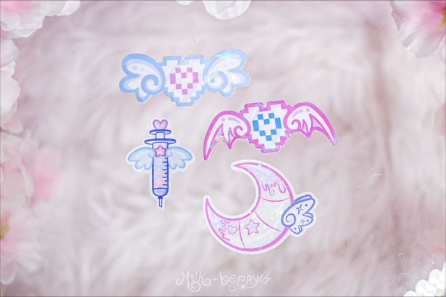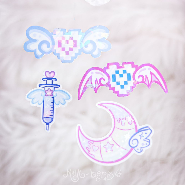 🌙 Personnalisez vos objets ou complétez votre sticker book avec ces autocollants aux vibes Y2K et yumekawaii ! Cœur pixel ailé, seringue ou lune, tous affichent des teintes pastel pleines de douceur.