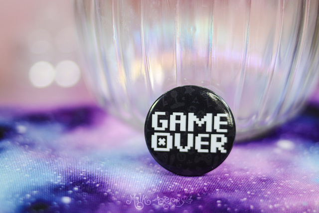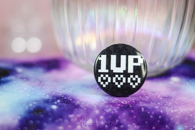 🎮 Game Over, Insert Coin, Press Start, Error 404, 1 Up, OK, cœur : divers badges à message en pixels, à destination des geeks et des gamers.