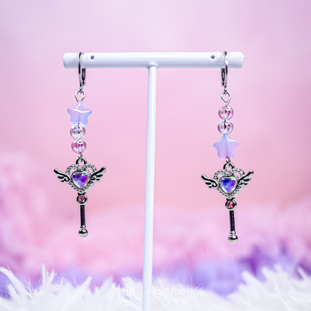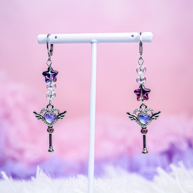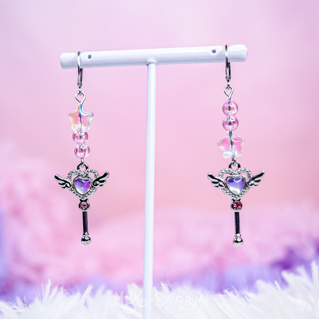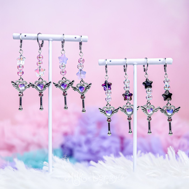 🌟 Si vous avez l'âme d'une Magical Girl, les Boucles d'oreilles Magical Heart devraient vous plaire ! Surplombées d'une perle étoile et de perles transparentes, ces élégantes boucles d'oreilles apporteront une touche d'éclat et de magie à vos tenues Lolita, Harajuku, Yumekawaii ou complèteront vos tenues plus casual.